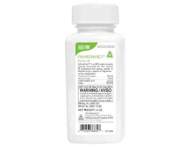 Fahrenheitâ„¢ is a 38% water soluble granule herbicide for the control of broadleaf and grassy weeds in labeled warm-season turfgrasses. Can be applied in spring, summer and fall with temperatures above 50 degrees. Fahrenheit's easy to use formulation produces visible activity in 7-10 days.