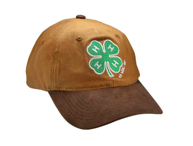 Tan and Suede Bill Cap-Embroidered green 4-H clover on front, embroidered text reading "Since 1902" above the closure - 100% cotton with adjustable back - One size fits most adults, 59cm adjustable with snapback - Features the 4-H seal logo in green