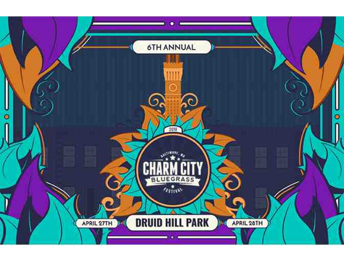 Now bigger and better than ever...four general admission tickets to the Charm City Bluegrass Festival on April 27 and 28, 2018 at Druid Hill Park. Hours are 4:00 pm-9:30 pm Friday and 10:00 am-9:30 pm Saturday. Two days of music at this wonderful event for all ages. Children under 10 are free.