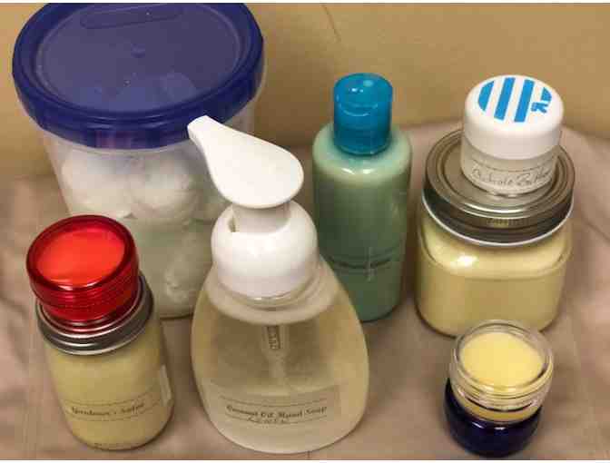 Wonderful and moisturizing home-made lotions -- Body butter, cuticle butter, foaming hand soap, gardener's salve, honey lip balm and moisturizing in-shower lotion. And for potions- fizzy cleaning tabs for water bottles!