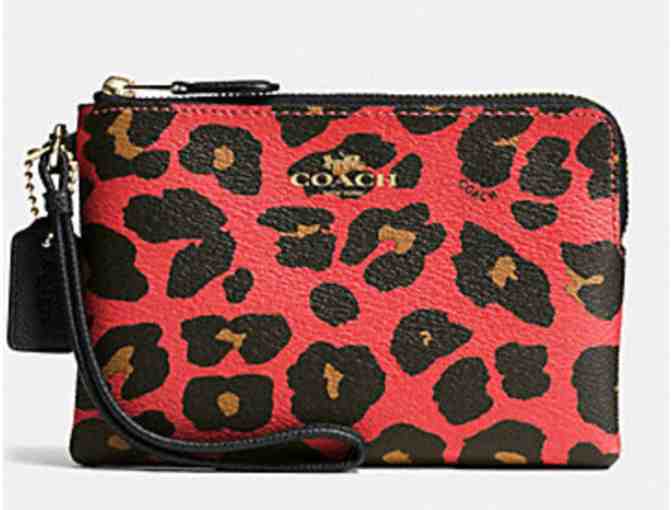 COACH CORNER ZIP SMALL WRISTLET IN LEOPARD PRINT -WATERMELON - NWT