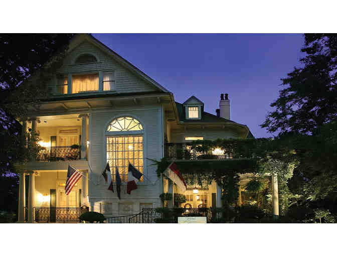 Dangerous Liaison evening at Hotel St. Germain. The package includes a Three Night Stay in Suite Seven for One Couple. The suites are antique filled with a fireplace, canopy bed and romantic setting. Upon your arrival, two glasses of champagne will be served in your Suite along with an appetizer. The following morning an elegant breakfast will be served either in your suite, in our Grand Dining Room or our New Orleans Style Courtyard by a tuxedoed butler. The Package includes an exquisite Multi Course Dinner for Two served in the Intimate Old World Ambiance of the Romantic Grand Dining Room overlooking a New Orleans style courtyard. Haute Cuisine will be served by tuxedoed butlers on 75 year old Limoges china with Sterling Silver Place settings. With a credit of $100 towards a bottle of wine.