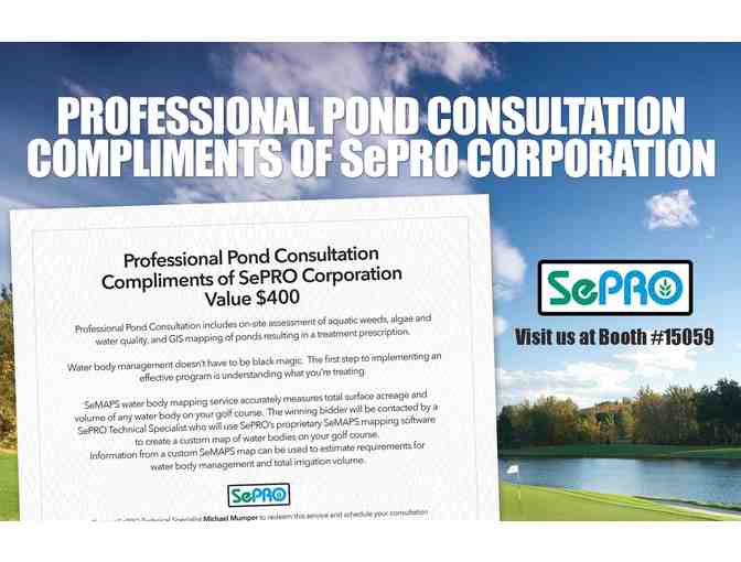 The winning bidder will be contacted by a SePRO Technical Specialist to arrange for a complete pond consultation. Information from the consultation can be used to estimate available irrigation volume, evaluate irrigation water quality, and outline a water body management plan.