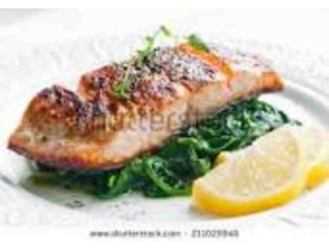 Salmon dinner for 8 on a balmy late-summer night in the Northwest. Menu to include signature cocktail for the evening, Salmon dinner with accompaniments, wine parings and dessert.