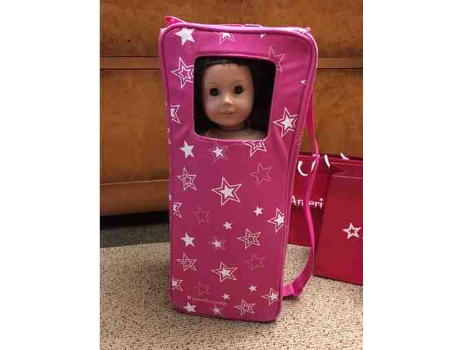 Don’t pass up this doll from the American Girl “Truly Me” collection! The doll is in good shape (other than a bad hair cut) and includes its carrying case. The carrying case is an official American Girl Doll item and can be carried as a back pack - perfect for carrying your doll to sleep overs!