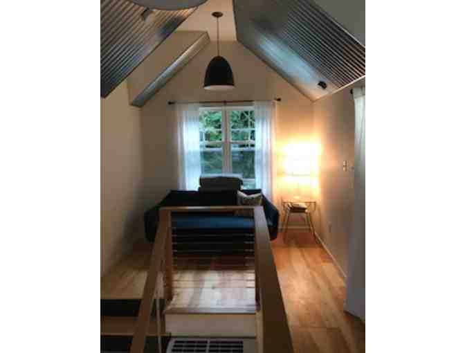 This getaway features a 360 square foot "tiny" home that sleeps four people (one queen bed and two bunks), has a comfortable sitting room, kitchen, bathroom with shower, as well as an outdoor shower. It is a short walk to the Salem Harbor where you can take in breathtaking sunsets.