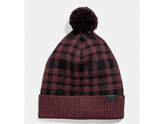 COACH PLAID POM POM HAT - MERLOT - NWT