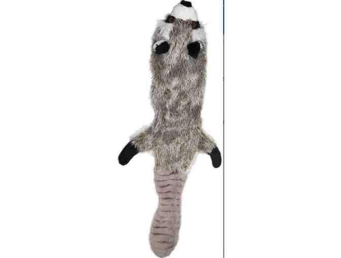 14 inch stuffing free dog toy satisfies a dogs natural hunting instinct. With no stuffing to rip out, they offer long lasting play. The realistic animal design provides a flip flopping action dogs love. Squeaks for endless amount of fun! Machine washable.