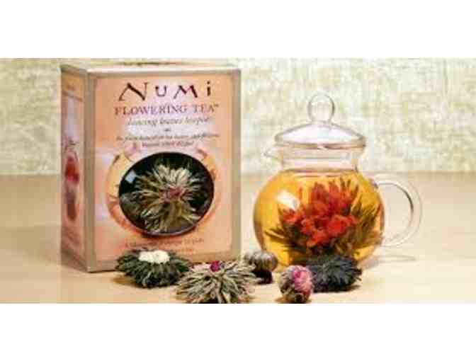 This handcrafted mahogany bamboo chest contains a small box of 6 Flowering Teas™ and a glass teapot.