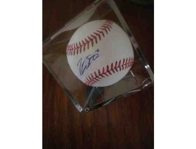 Up for auction is a baseball signed by up and coming Cubs third baseman Tommy LaStella.