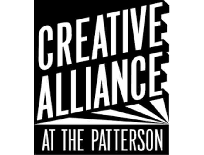 The Creative Alliance package includes a Solo Membership and two tickets to Creative Alliance events. Membership provides discounts to shows, workshops, parties and annual Gala; participation in The Big Show art exhibit; and a mailed calendar of activities. Use the two passes for Creative Alliance events.