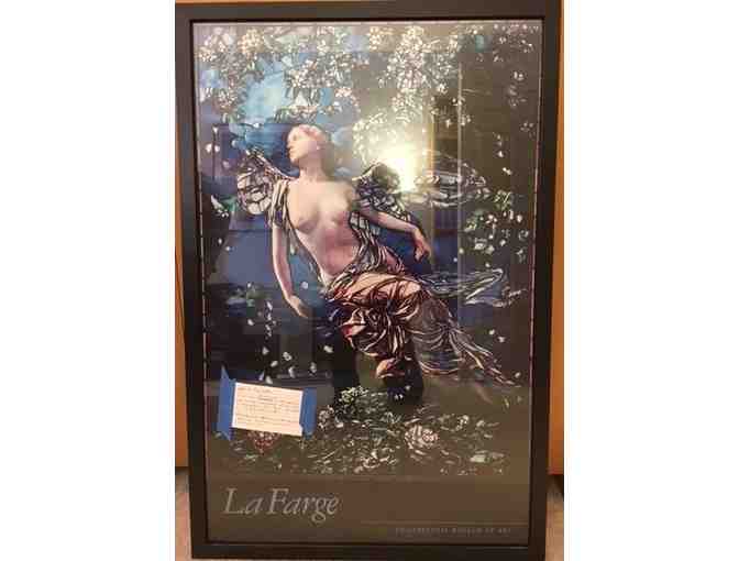 This beautifully framed full-color print is of a stained-glass work by John LaFarge. The work was created in stained glass in 1900-1902; the original is in the Philadelphia Museum of Art. Covered with non-glare glass, this work is ready for hanging in your home.