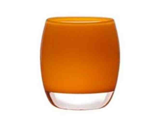 "Curry" glassybaby in a deep orange color, with gift box. (in the 2nd photo shown here the "Curry" glassybaby is on the far left.)