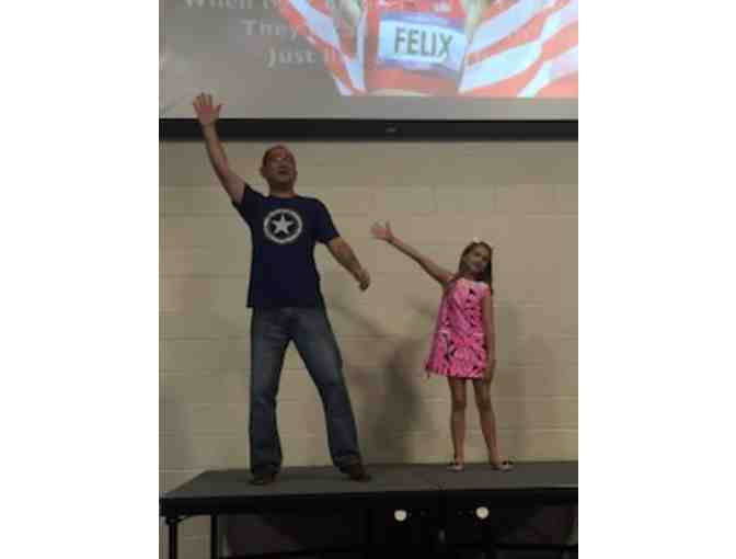 Does your child have favorite songs he or she wants to sing at Charger Shine? One lucky child will help Mr. H pick the songs for the assembly and sing and dance along with him on stage. (Includes opening and closing songs and Birthday Rap.)