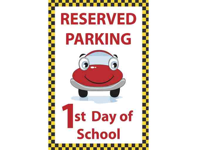 Your personal, very own Reserved Parking Spot in the school parking lot for the first day of the 2018 - 2019 school year (August 20, 2018).