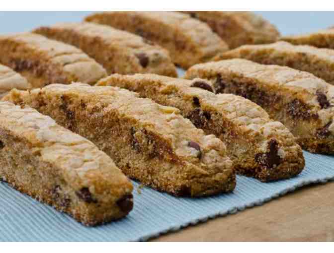Enjoy a generous portion (about 6 dozen pieces) of delicious home-baked chocolate chip mandel bread. Mandel bread, a Jewish cookie popular amongst Eastern European Jews, is similar to Italian biscotti though somewhat softer on the inside. Delicious dipped in morning coffee or eaten plain.