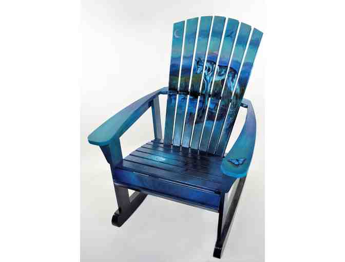 Powerful In Vulnerability is a custom-made Adirondack rocking chair built by Thom Wallace that was gifted to Erin R.M. Dutton. As an accomplished watercolor artist, her free-flowing technique is unmistakable even when applying acrylic paint.