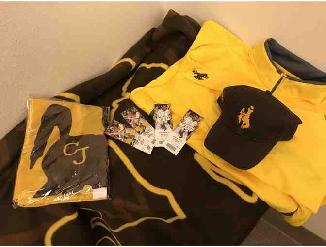 University of Wyoming gear with 2 UW Women's basketball tickets and 2 UW Men's basketball tickets