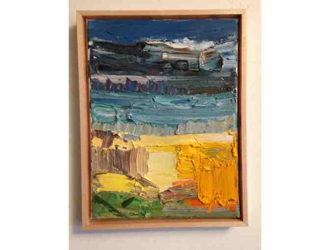 John Santoro lives and works in Chicago where he obtained his degree at the University of Chicago. John's aesthetic lies squarely within the history of abstract expressionism and his work exhibits thick, rich surfaces built up with oil paint. John also has an interesting, slightly wry sense of humor that comes through in both his subject and title choices. Santoro interprets landscapes, forms and structures in a simplistic yet focused way that invites the viewer into the work.