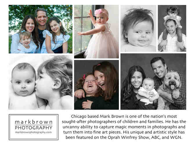 For over 20 years, Chicago based Mark Brown has been one of the nation’s most sought after children and family portrait photographers. He specializes in capturing the perfect moment, highlighting his subjects’ personalities and turning them into timeless, unique, heirloom pieces of fine art. This certificate is good for one Photo Session in the new Mark Brown Photography loft studio located in the historic Deagan Music Building of Ravenswood.