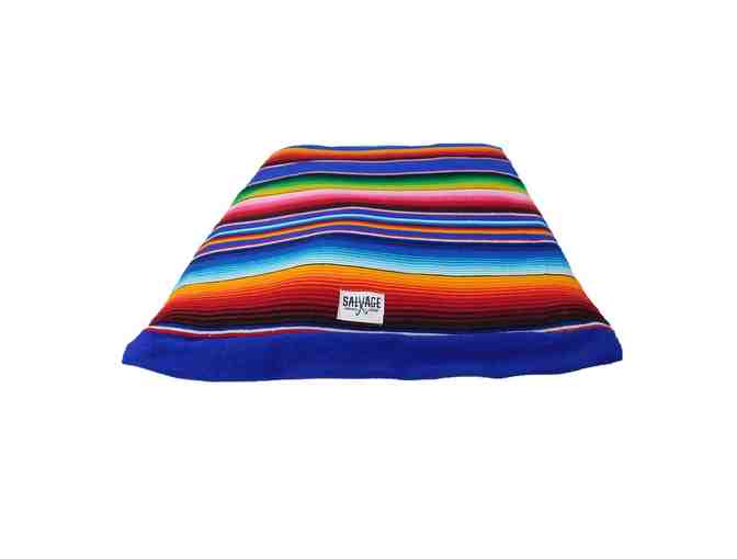 Whether it's a working dog or a jet-setter, this saltillo serape rollup travel dog bed by Salvage Maria Goods is perfect for the pooch on the go! Handcrafted in Los Angeles. Includes useful leather add-on straps.