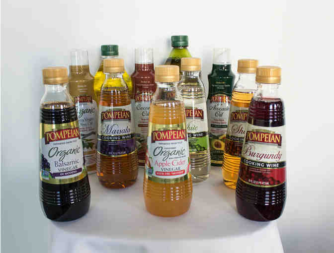 After establishing headquarters in Baltimore in 1906, Pompeian began importing olive oil in bulk, then blending and bottling it fresh daily here in the U.S. the only national brand of olive oil to do so. Impress your friends and families with new and delicious ways to use these wonderful products. Gift pack includes: three 32oz olive oils; full-bodied, robust, and smooth, two 24oz olive oils; mild and light taste, one 24oz grapeseed oil, four 16oz cooking wines; marsala, sherry, white, and burgundy, three 5oz cans of cooking sprays; extra virgin, coconut, and avocado, and three 16oz organic vinegars: red wine, apple cider, and balsamic. Even more items than shown in the photo. Let the cooking extravaganza begin!