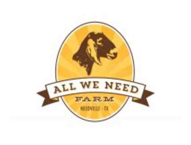This package includes a private tour of the All we need Farms in Guy Texas for 10 guests. Owner Stacey Roussel will take visitors to where she milks her goats and the dairy where she makes her award winning goat milk gelato pops. This tour is a great chance to get up close on personal with the goats and try some delicious pops!!