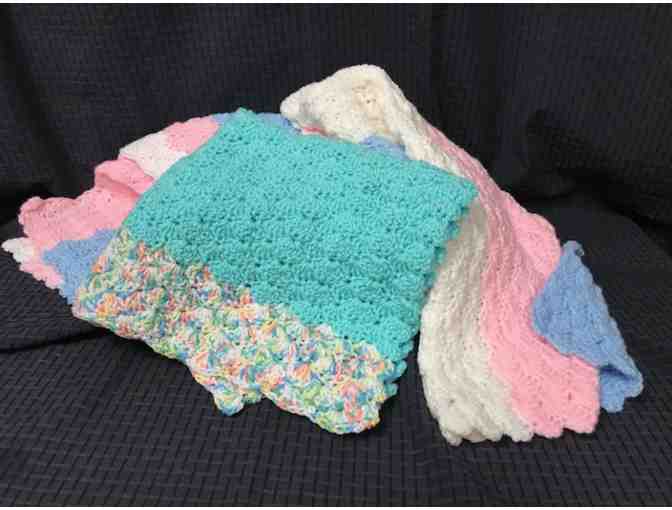 Three baby blankets, have one for your car, stroller and nap time. These are just the right size to tuck around baby.