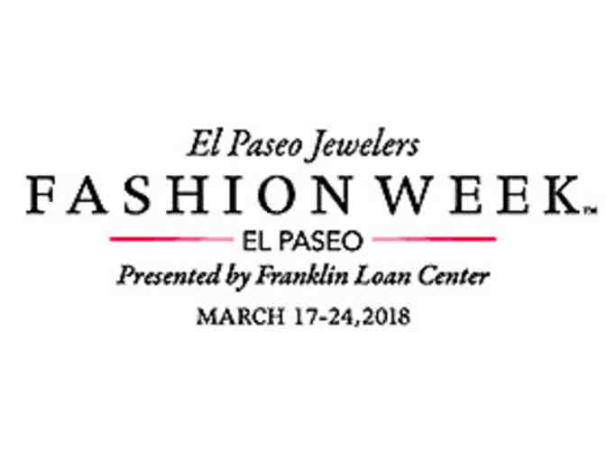 Your package includes two (2) General Admission tickets to ALL eight (8) shows of Fashion Week El Paseo, March 17-24, 2018. You'll be attending the largest consumer fashion show on the West Coast, held at The Gardens on El Paseo in Palm Desert.