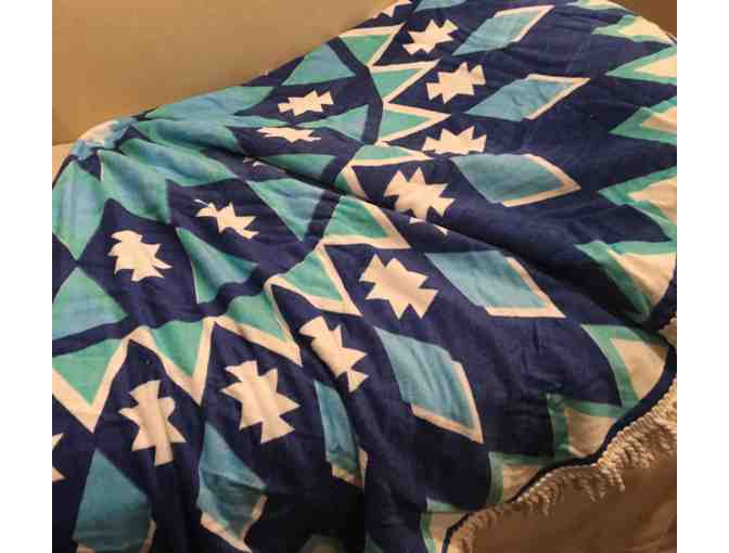 Beach days just got a whole lot more fun with this playful, 100% cotton beach towel by Shay Olive in a unique round shape.  Measures approximately 5 ft. in diameter.  Included is a $20 Shay Olive gift card good towards the purchase of any item sold online.