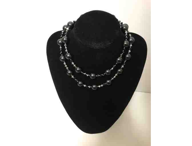 Original Swarovski Crystal (Iridescent Silver & Black) Bead, Black Cultured Pearl Necklace from BUH Productions Jewelry.