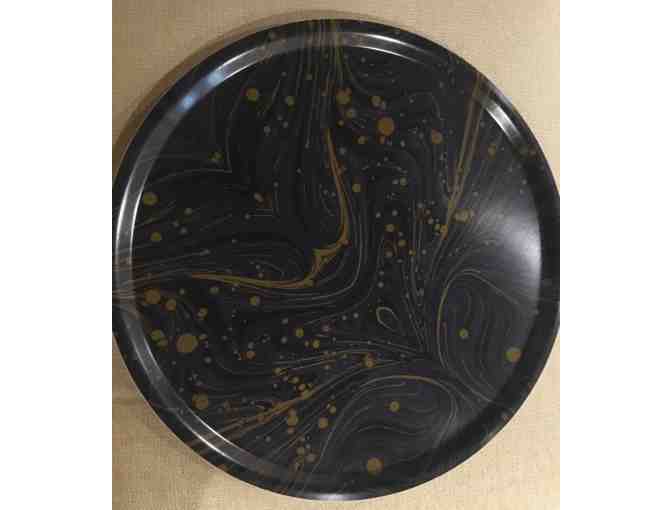 Tisch New York's lightweight birchwood-veneer tray printed in a black marble pattern is a must-have accent for your home. Made in Sweden, this elegant tray wipes clean for easy care, and is both durable and food safe.