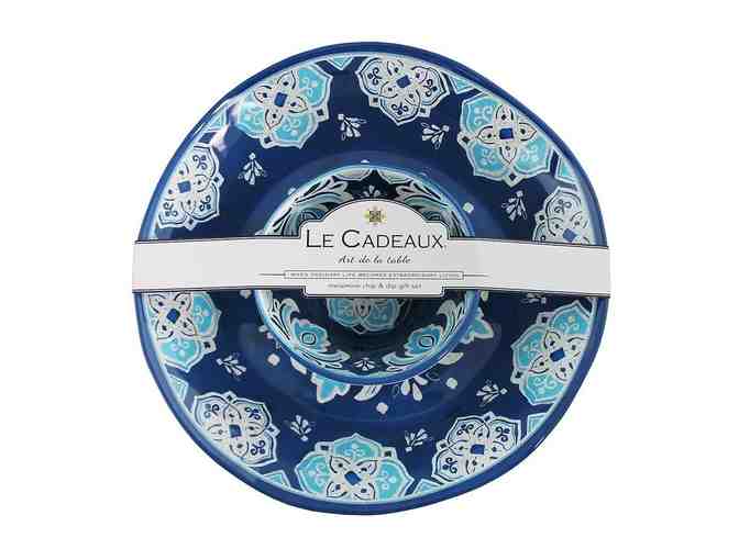 Looking for the perfect host/hostess gift? Le Cadeaux's heavy and durable melamine chip and dip set, packaged for gift-giving, will add a touch of class to any table with its beautiful French pottery inspired pattern. Set includes two bowls. Nearly unbreakable, these bowls are great for outdoor entertaining. Dishwasher safe.