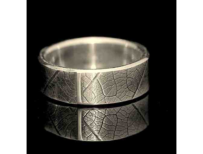 Acclaimed local artist Nick Grant Barnes has made this beautiful Sterling Silver Imprint ring. The ring has a pattern directly imprinted from a gum leaf. It is a size 6.5, but can be resized for the winning bidder.