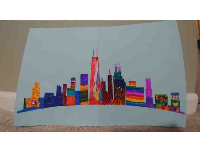 Two beautiful images depicting the skyline of Chicago. Made by all the students of Ms. Demonte's class. Framed.