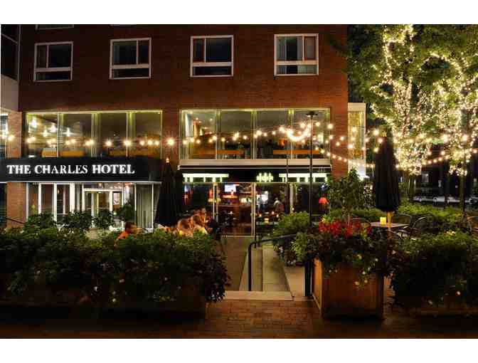 One night stay in a Standard Deluxe Room at the Charles Hotel, must be used by October 21, 2018. Subject to availability, blackout dates apply, excludes alchohol and gratuity.