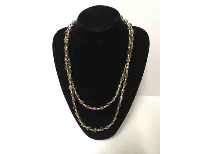 From BUH Productions Jewelry, Original Swarovski Crystal (Fluorescent Sunset) Bead and Cultured Pearl Necklace.