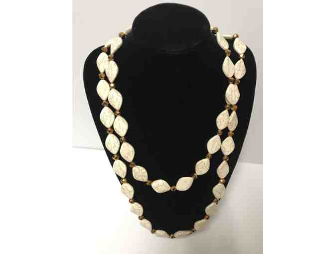 Original BUH Productions Jewelry White Buffalo Turquoise-Dine Nation (Stabilized), Swarovski Crystal (Iridescent Copper) Bead Necklace.
