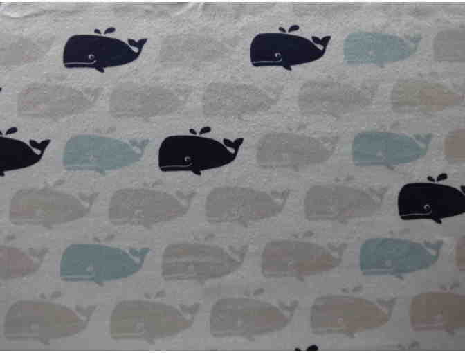 Supersoft fleece blanket is perfect for tucking around your little one in the car seat or stroller. Smaller size means less to carry, or get caught on wheels. Cute whale pattern. Approximately 29 X 34 inches.