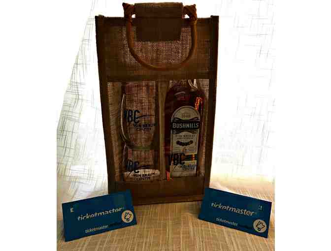 This VBC gift includes a bottle of Bushmills Irish Whiskey, Two Glasses, and 2-$25 Ticketmaster Gift Cards to redeem for VBC events!