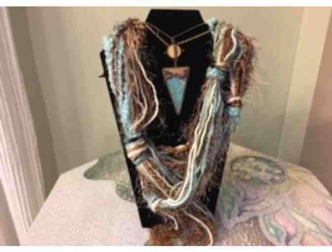 Aqua/Brown Scarf and Necklace