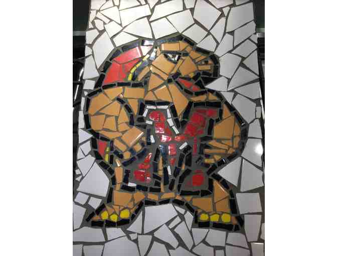 This piece of artwork is created by local artist Arturo Ho, who is a Silver Spring-resident and owner of his own art company. Over the past 19 years, his focus has been working in diverse communities, schools, and with youth to collaborate and create murals, mosaics, and various multi-media projects. In addition to his work with youth and communities, he also has a background in illustration and fine art. Some other art services he offers are graphic design logos, illustrations, and art classes in mosaics and murals for young people. Ho grew up in Mozambique as the son of Chinese immigrants and trained at the Pennsylvania Academy of Fine Arts and the Art Institute of Philadelphia. He has designed mosaics at several area schools and other community locations, including the mosaic on the wall of the Takoma Park Library and the peace pole at Banneker Middle School.