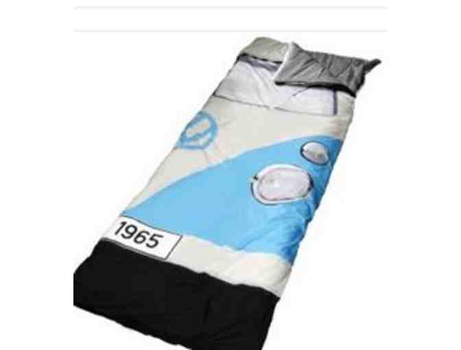Here's the perfect accompaniment to any camping trip, the coziest solution to cold nights under the stars, the VW camper sleeping bag. Adorn your tent with this most stylish of accessories and become the talk of the camping town. Bag measures 6.5' x 2.45' and can fully unzip to form a double blanket. Top it off with a $50 gift certificate to Shananigans Toy Shop; find something wonderful for your kids--or the kid in you!