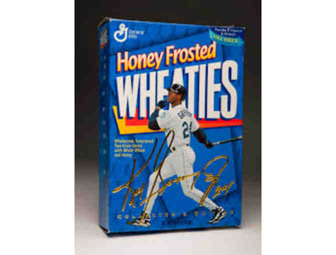 Includes a Ken Griffey Jr. rookie baseball card, an autographed box of Frosted Honey Wheaties and two "sealed" posters - a must for a fan of the Hall of Fame player!