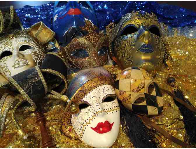 This assortment of collectible Carnival masks will add flair to your walls or pizzazz to your next masquarade party. Handcrafted in Venice of papier-mâché with ribbon, metal decoration, and/or finely painted detail. Each piece is beautiful, created with patience and attention to detail.