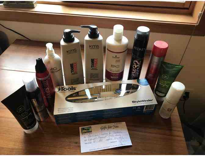 This is a wonderful array of products from the Blue Island Beauty Salon. Included are hair care products from Liftlt, Pureology, Big Sexy Hair, AG Hair Cosmetics, KMS California, Schwarzkopf Professional Hairtherapy, BC-Bonacure, Redken, and Teatree. Also included is a Bio-Ionic iTools Stylewinder, 3/4" rotating styling iron, valued over $100.00.