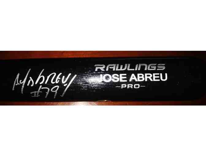 White Sox great Jose Abreu autographed full size black baseball bat w/silver autograph. Authenticated by Heroes and Legends