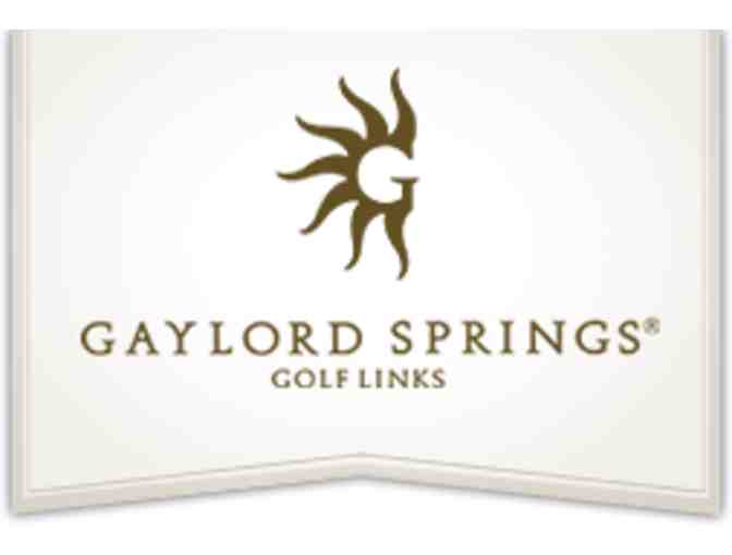 An 18-hole round of golf for four with carts at Gaylord Springs Golf Links in Nashville, TN. Please call 615-458-1730 to set up reservations. Certificate expires December 31, 2018. URL: http://www.gaylordsprings.com/