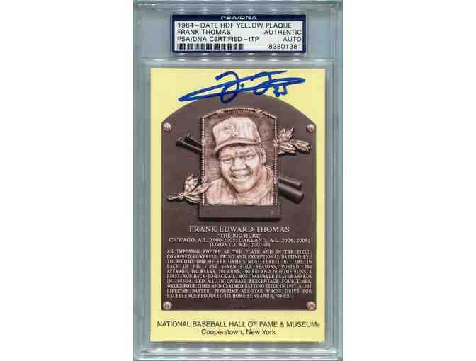 A Frank Thomas PSA/DNA certified authentic autographed Hall of Fame Plaque postcard. (postcard measures 3-1/2" x 5-1/2")
