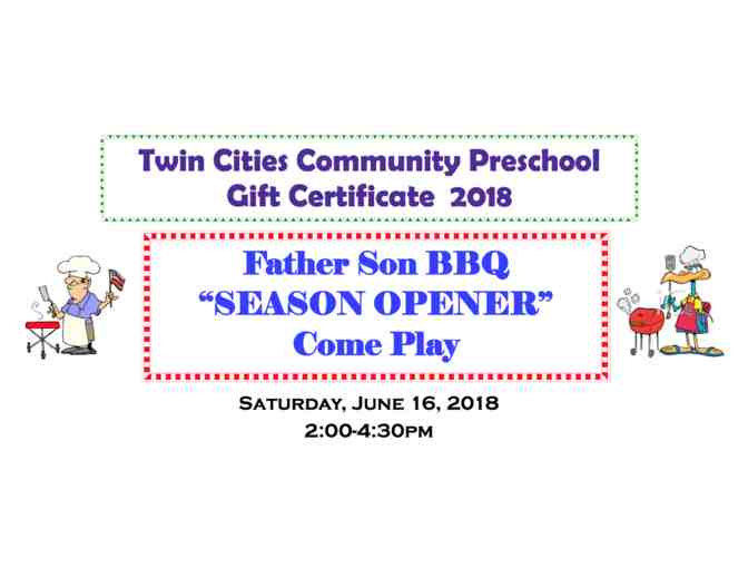 Two tickets to attend the Corte Madera Parks & Recreation Center's Father Son BBQ "Season Opener" on Saturday, June 16, 2018 from 2-4:30pm at the Corte Madera Community Center.